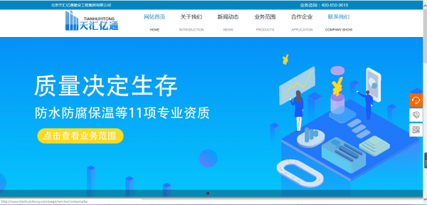 海洋網(wǎng)絡(luò)從2019年開始與北京天匯億通建設(shè)工程集團有限公司簽約網(wǎng)站建設(shè),幫助北京天匯億通建設(shè)工程集團有限公司網(wǎng)站設(shè)計及開發(fā)網(wǎng)站多次網(wǎng)站平臺,此項目為北京天匯億通建設(shè)工程集團有限公司新版官方網(wǎng)站。