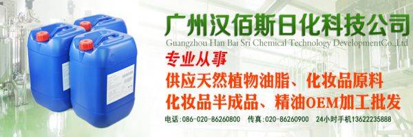 廣州漢佰斯日化科技發(fā)展有限公司是有多年從事天然精油批發(fā)、精油OEM加工、化妝品原料批發(fā)及進(jìn)出口的公司,主營(yíng)業(yè)務(wù)為各類天然香料精油、化妝品原料、OEM加工和化妝品配件,集研發(fā)、生產(chǎn)和進(jìn)出口銷售一體化經(jīng)營(yíng)。 公司有10多年經(jīng)營(yíng)天然香料精油、精油OEM加工、化妝品原料及研發(fā)的經(jīng)驗(yàn),與世界各地的經(jīng)銷商、供應(yīng)商建立了長(zhǎng)期良好的合作關(guān)系。公司依托香港、深圳、廣州的高效、快捷的物流服務(wù)體系,為世界各地的客戶提供高質(zhì),多樣的銷售服務(wù)。 廣州漢佰斯日化科技發(fā)展有限公司憑借多年以來(lái)豐富的市場(chǎng)經(jīng)驗(yàn)與雄厚的實(shí)力,通過(guò)公司人員的不懈努力和創(chuàng)新,如今客戶遍及歐美及東南亞各國(guó),成為國(guó)內(nèi)及香港主要的天然精油、精油OEM加工、化妝品原料進(jìn)出口公司。 公司主營(yíng)產(chǎn)品天然葡萄籽油、橄欖油、甜杏仁油、玫瑰果油、小麥胚芽油、荷荷巴油及其他各種天然精油,基礎(chǔ)油可年產(chǎn)銷12000噸,已成為國(guó)內(nèi)天然精油、化妝品、香料及原料的進(jìn)出口企業(yè)之一,也是香港主要的天然香料精油基礎(chǔ)油進(jìn)出口公司。