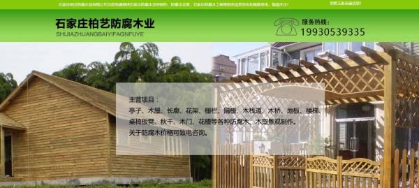 石家莊柏藝防腐木業(yè)有限公司選用我司企業(yè)防腐木業(yè)行業(yè)的網(wǎng)站優(yōu)化產(chǎn)品,其SEO關(guān)鍵詞有 石家莊防腐木涼亭制作,河北防腐木花架,石家莊防腐木。其特點是用很合適的展示方式、展示效果、站點框架,把客戶及其用戶很關(guān)心的問題突出表現(xiàn);并以簡潔明朗的設(shè)計風(fēng)格,清晰展現(xiàn)公司水平實力,確保一秒抓住目標(biāo)用戶眼球,給用戶留下良好的第一印象。石家莊柏藝防腐木業(yè)有限公司是經(jīng)石家莊市市場監(jiān)督管理局審核的有資質(zhì)的公司。公司地址:河北石家莊高新開發(fā)區(qū)。