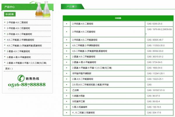 新沂大*化工有限公司選用我司企業(yè)化工原料行業(yè)的網(wǎng)站優(yōu)化產(chǎn)品,其SEO關(guān)鍵詞有 4,6-二甲氧基-2-甲磺?;奏?,4,6-二甲氧基-2-(苯氧基羰基)氨基嘧啶,2-氨基-4,6-二甲氧基嘧啶,2-氨基-4-甲氧基-6-甲基-1,3,5-三嗪(均三嗪),芐磺胺,新沂大*化工有限公司。其特點(diǎn)是用很合適的展示方式、展示效果、站點(diǎn)框架,把客戶及其用戶很關(guān)心的問題突出表現(xiàn);并以簡潔明朗的設(shè)計(jì)風(fēng)格,清晰展現(xiàn)公司水平實(shí)力,確保一秒抓住目標(biāo)用戶眼球,給用戶留下良好的第一印象。新沂大*化工有限公司成立于2005年,是經(jīng)新沂市市場監(jiān)督管理局審核的有資質(zhì)的公司,其統(tǒng)一社會(huì)信用代碼:91320381**8049630E 。公司地址:新沂市經(jīng)濟(jì)開發(fā)區(qū)化工園區(qū)經(jīng)一路。