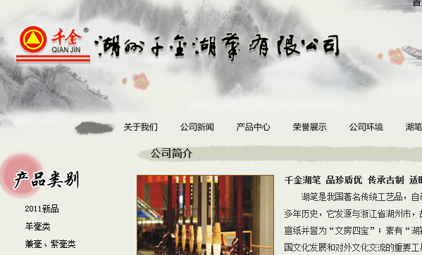 湖筆是我國著名傳統(tǒng)工藝品,自秦蒙括創(chuàng)豪,至今已有二千多年歷史,它發(fā)源與浙江省湖州市,故稱湖筆。與徽墨、端硯、宣紙并譽(yù)為“文房四寶”;素有“湖穎之技甲天下”之稱,是我國文化發(fā)展和對(duì)外文化交流的重要工具之一。二00六年湖筆技藝被國家列于第一批非物質(zhì)文化遺產(chǎn)名錄。我公司(廠)生產(chǎn)的“千金”牌湖筆,繼承保持“選料純、工藝精”的湖筆傳統(tǒng)特色,并不斷開發(fā)研制新品種。產(chǎn)品具有“尖、齊、圓、健、剛?cè)嵯酀?jì)、得心應(yīng)手”之獨(dú)特風(fēng)格。“千金”牌湖筆被中國文房四寶協(xié)會(huì)評(píng)為“國之寶”中國十大名筆,為湖州市名牌產(chǎn)品,湖州市著名商標(biāo)。“千金”牌湖筆受到中央領(lǐng)導(dǎo)和著名書畫家的喜愛,產(chǎn)品暢銷全國各大書畫社、旅游商場(chǎng)、文化用品商店、并遠(yuǎn)銷日本、東南亞各國和港澳市場(chǎng),深受青睞。
