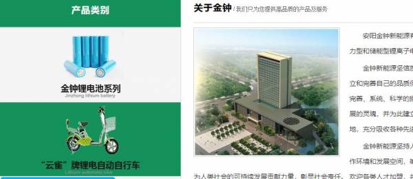 安陽(yáng)金*新能源有限公司選用我司企業(yè)日用化工行業(yè)的網(wǎng)站優(yōu)化產(chǎn)品,其SEO關(guān)鍵詞有 鋰電池,鋰電池供應(yīng)商,鋰電池生產(chǎn)廠家,鋰電池批發(fā)商,云雀電動(dòng)車,云雀鋰電車,電動(dòng)車鋰電池。其特點(diǎn)是用很合適的展示方式、展示效果、站點(diǎn)框架,把客戶及其用戶很關(guān)心的問(wèn)題突出表現(xiàn);并以簡(jiǎn)潔明朗的設(shè)計(jì)風(fēng)格,清晰展現(xiàn)公司水平實(shí)力,確保一秒抓住目標(biāo)用戶眼球,給用戶留下良好的第一印象。安陽(yáng)金*新能源有限公司成立于2011年,是經(jīng)安陽(yáng)市市場(chǎng)監(jiān)督管理局審核的有資質(zhì)的公司,其統(tǒng)一社會(huì)信用代碼:91410500**6003435R。公司地址:河南安陽(yáng)市開(kāi)發(fā)區(qū)平原路高新區(qū)商頌大街南段西側(cè)。