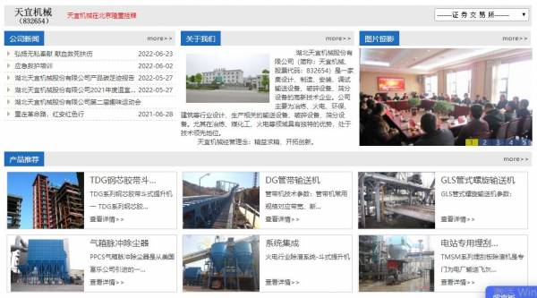 湖北天宜*械股份有限公司(股票簡(jiǎn)稱:天宜機(jī)械,股票代碼:832654)是一家集設(shè)計(jì)、制造、安裝、調(diào)試輸送設(shè)備、破碎設(shè)備、篩分設(shè)備、除塵設(shè)備的高新技術(shù)企業(yè)。公司位于湖北省宜都市,錄屬于三峽宜昌“半小時(shí)經(jīng)濟(jì)圈”,鄂、渝、湘三省市交界處,距離舉世矚目的三峽大壩50余公里,距離三峽國(guó)際機(jī)場(chǎng)20余公里,焦柳鐵路及長(zhǎng)江、清江貫穿南北,形成了空中、陸地、水上立體運(yùn)輸網(wǎng)絡(luò),為人流、物流提供了方便快捷的運(yùn)輸服務(wù)。公司占地面積70000平方米,固定資產(chǎn)8900萬(wàn)元,職工200余人(其中工程技術(shù)人員65人)。